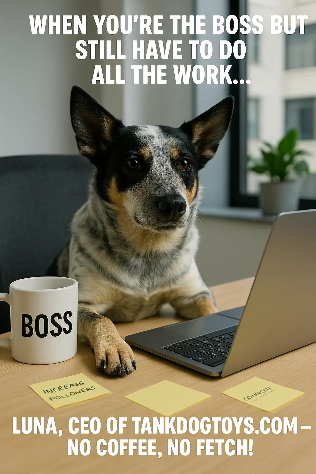 Luna is the heart and soul of TANK Dog Toys. A proud rescue pup with a mysterious past, Luna made her way into our lives with a wagging tail, a gentle heart, and jaws of steel. We think she’s around six years old, but she’s keeping her real age a secret (a lady never tells). Don’t let her calm eyes fool you—Luna is built like a tank. Big, strong, and always ready to play, she earned the title of Alpha Dog in our pack of three with quiet confidence and unshakable loyalty. Her favorite pastime? Chewing. Constantly. Power chewer doesn’t even begin to cover it—she’s the ultimate product tester, and if it passes the Luna test, it’s ready for any dog. As peace-loving as a Blue Heeler can be, Luna leads with love, keeping the pack balanced while reminding us why tough, fun, and safe toys matter. She’s not just our inspiration—she’s our CEO (Chief Enjoyment Officer).Tank Dog Toys is her legacy. From our pack to yours, Luna’s here to make playtime powerful.